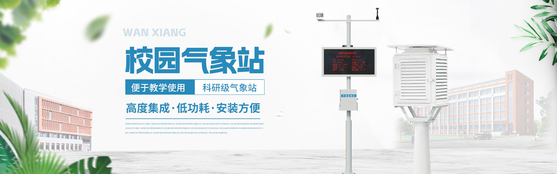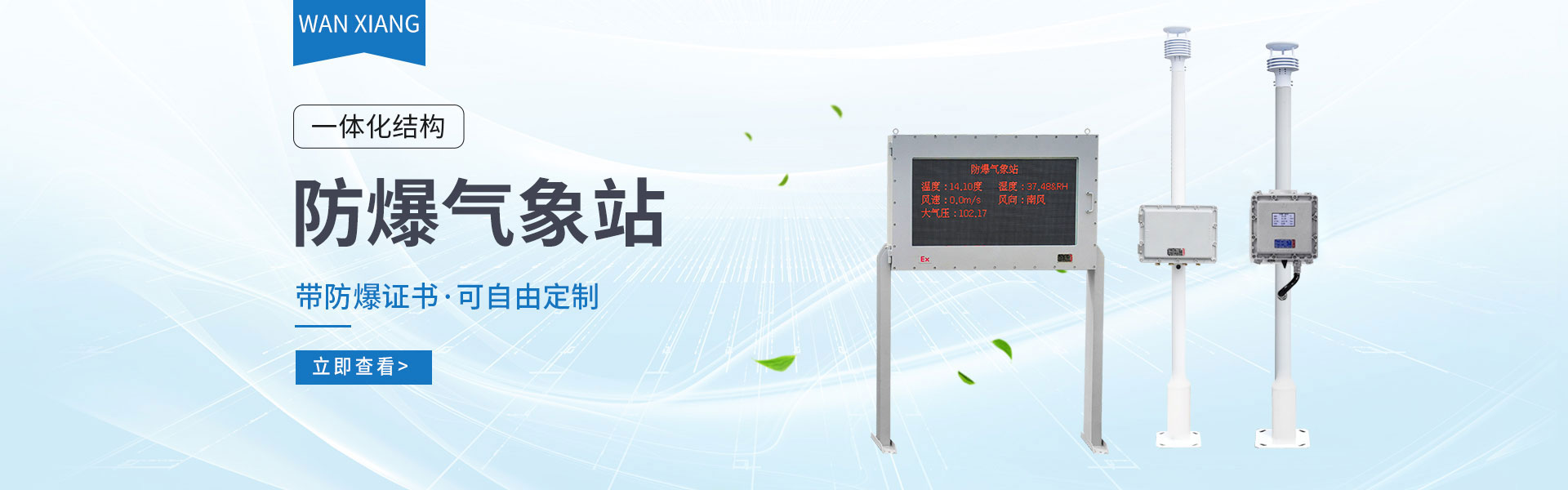 山東萬象環(huán)境科技有限公司官網(wǎng)主要產(chǎn)品有防爆氣象站,校園氣象站,農(nóng)業(yè)氣象站,負氧離子監(jiān)測站,超聲波氣象站,歡迎咨詢15610293837!